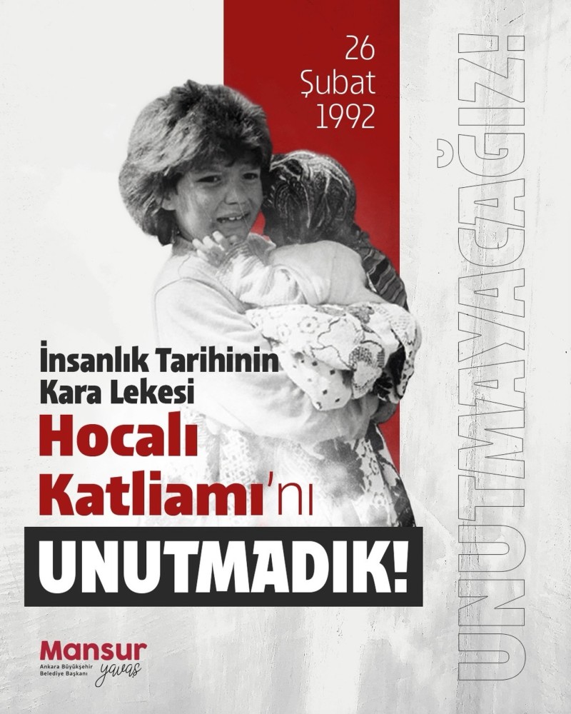 Türkiyənin Ankara şəhərinin bələdiyyə sədri Mansur Yavaş sosial mediada Xocalı Soyqırımının 34-cü ildönümü ilə əlaqədar paylaşım edib.
