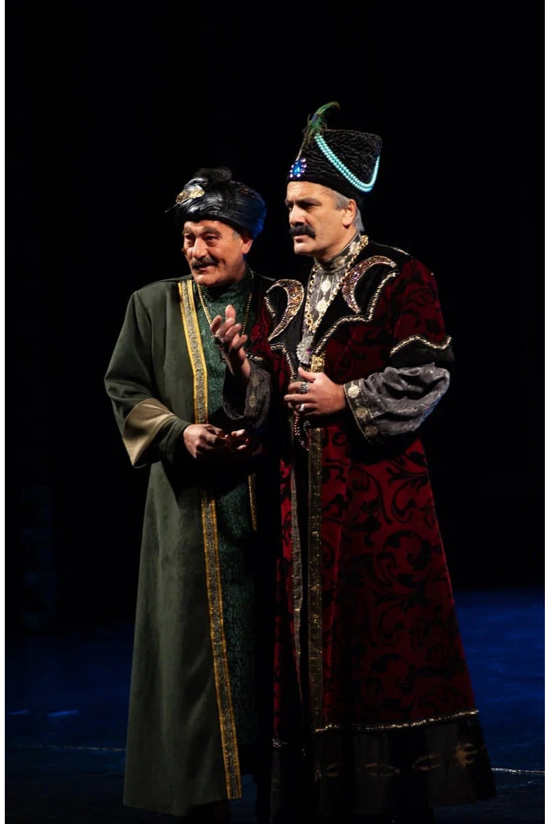 Səhnə əsərində Xalq artistləri Məleykə Əsədova (Xurşidbanu Natəvan), Kazım Abdullayev (Canişin), Əməkdar artist Anar Heybətov (Knyaz Xasay), Əməkdar artist Elşən Cəbrayılov (Seyid Hüseyn), aktyor Elçin Əfəndi (Hidayət xan), Xalq artisti Rafiq Əzimov (Mirzə Ruhullah), Əməkdar artist Elnar Qarayev (Mamayı), aktyor Vüsal Mustafayev (Zahir bəy), Xalq artisti Hacı İsmayılov (Qoca Knyaz), aktyorlar Ramin Şıxəliyev (Daşdəmir), Lalə Süleymanova (Bəyim), Əməkdar artist Mirzə Ağabəyli (kor kamançaçı), Əməkdar artist Kazım Həsənquliyev (Məliküldövlə), aktyorlar Cavidan Novruz (Nəvvab), Məhsəti Tahirzadə (Təhminə), Rüstəm Rüstəmov (Şahmar), Əməkdar artistlər Əlvida Cəfərov (Möhnət), Ayşad Məmmədov (Qala rəisi), Elşən Rüstəmov (Şahzadə), aktyor Tural İbrahimov (Mixaylov), Firuzə Balayeva, Elsevər Rəhimov, Elçin Nurəliyev, Nəzrin Abdullayeva (kültəvi səhnə) iştirak edirlər.