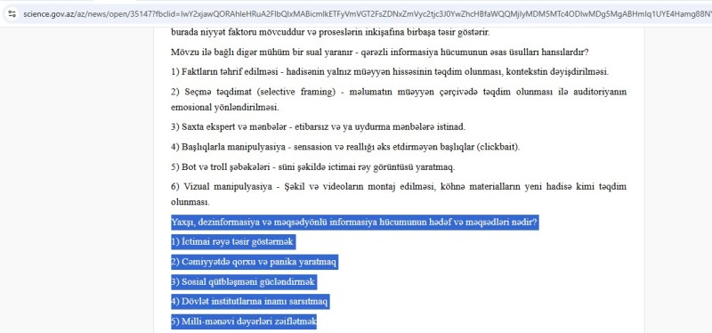 AMEA-nın Şərqşünaslıq İnstitutunun direktor müavini, fəlsəfə üzrə fəlsəfə doktoru, dosent Elnur Mustafayevin adından qurumun rəsmi saytında yayımlanan “Dezinformasiya və yaxud AMEA-ya məqsədyönlü və qərəzli informasiya hücumu haqqında bir neçə söz” sərlövhəli yazının süni intellekt vasitəsilə hazırlandığı məlum olub.