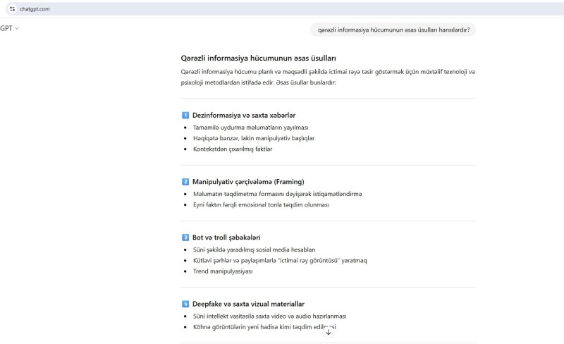 Belə ki, fəlsəfə doktoru “ChatGPT”dən istifadə edərək mövzuya uyğun suallar ünvanlayıb və aldığı cavabları öz imzası ilə ictimaiyyətə təqdim edib.