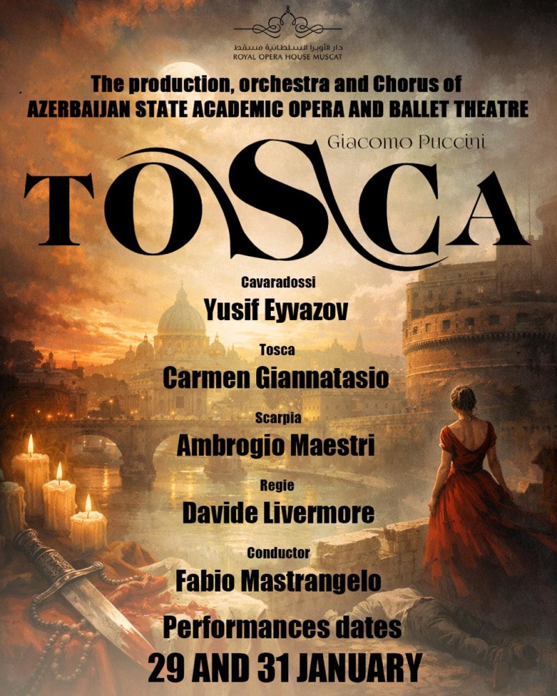 Yanvarın 31-də Oman Sultanlığının Maskat şəhərində yerləşən “Royal Opera House Muscat” səhnəsində Cakomo Puççininin “Toska” operasının premyerası olacaq.