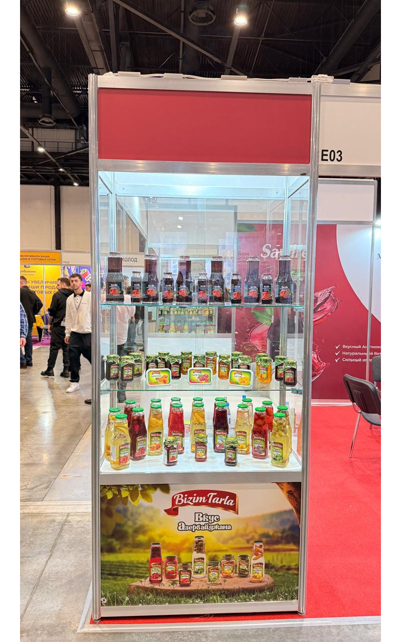 Sərgidə holdinqə məxsus müxtəlif zavod və fabriklərdə istehsal olunan konservləşdirilmiş məhsullar, içkilər, kompotlar, limonadlar, nar şirəsi, turşu məhsulları, mürəbbələr və digər qida çeşidləri nümayiş olunur. Stendimizdə məhsulların təqdimatı ilə yanaşı, dequstasiya da həyata keçirilir ki, bu da ziyarətçilərə Azərbaycan brendlərinin keyfiyyətini birbaşa qiymətləndirmək imkanı verir.