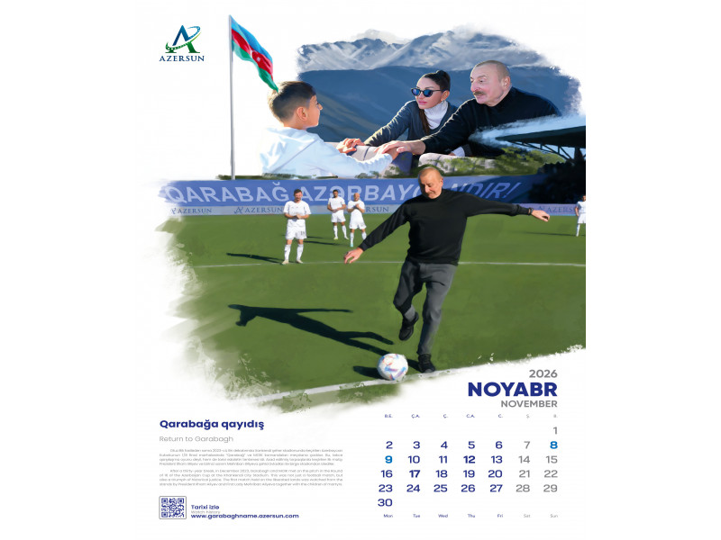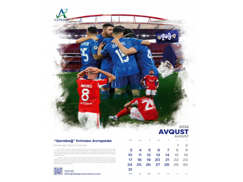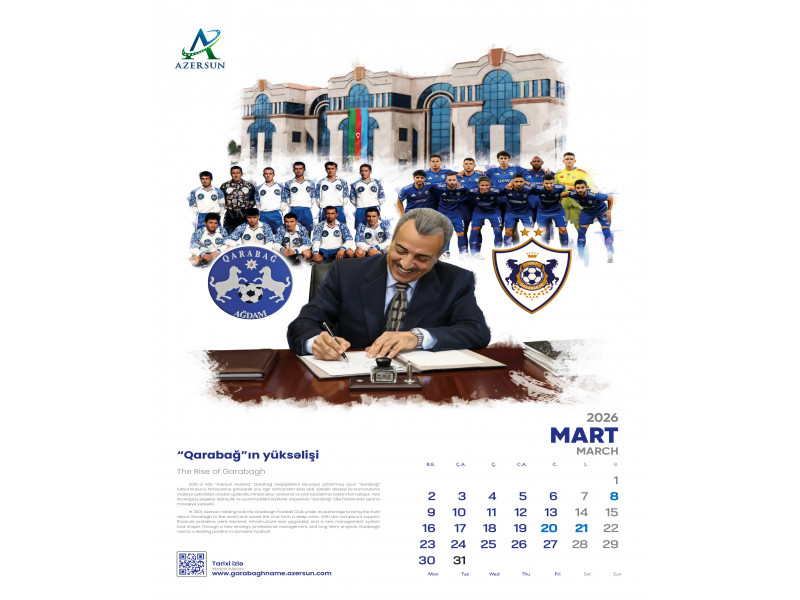 “Azərsun Holdinq” ənənəsinə sadiq qalaraq növbəti illik təqvimini çap etdirib. 2026-cı il üçün hazırlanan bu təqvim son illərdə futbol sahəsində qızıl dövrünü yaşayan “Qarabağ” futbol klubuna həsr olunub.