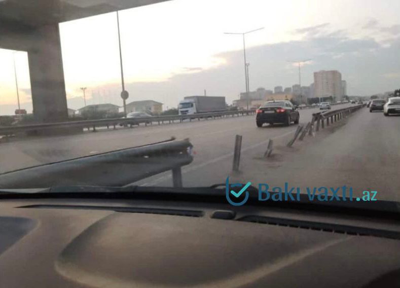 Bakıvaxtı.az xatırladır ki, bir müddət öncə həmin hissədə avtomobil qəzası baş verib və nəticədə dəmir arakəsmə yararsız hala düşüb. Belə ki, arakəsmənin dirəkləri önə əyilərək, ən azı 50-60 santimetr qabağa çıxıb. Bu isə sürücülər üçün olduqca böyük təhlükə, risk vəd edir.