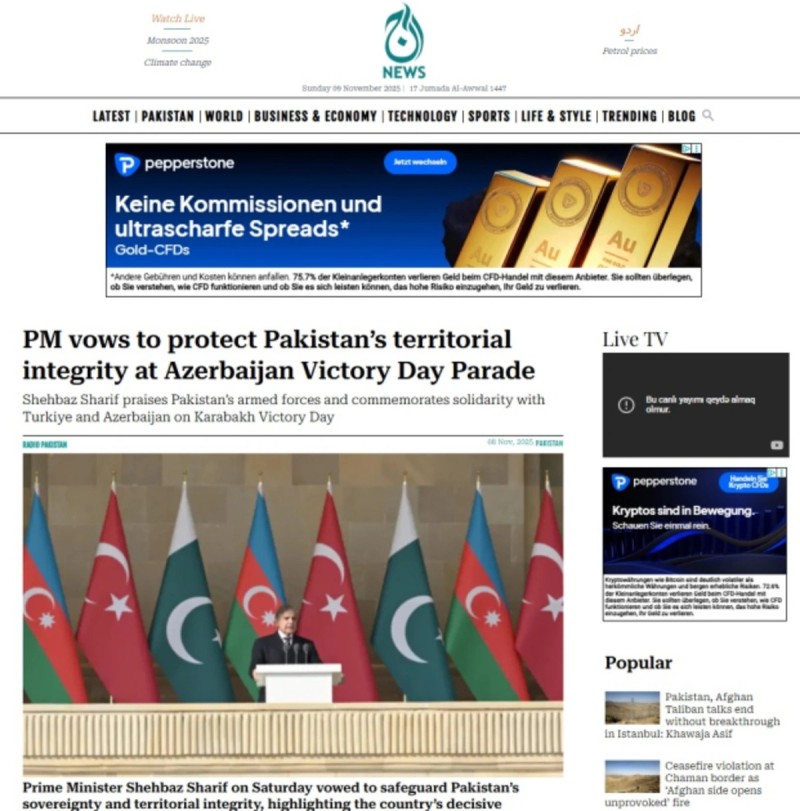 Pakistan mediasında Baş nazir Məhəmməd Şahbaz Şərifin Azərbaycana səfəri, Azərbaycan Prezidenti ilə görüşü, eləcə də Azərbaycan, Türkiyə və Pakistan liderlərinin üçtərəfli görüşü barədə də məlumat verilib.