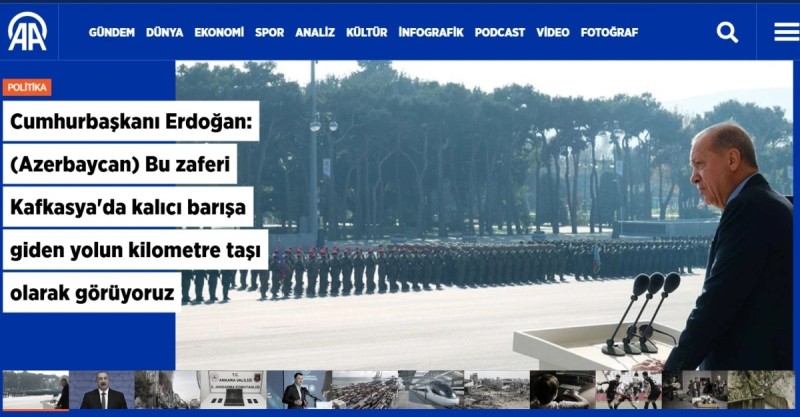 Xəbərlərdə Türkiyə və Azərbaycan liderlərinin Cənubi Qafqazda dayanıqlı sülh və sabitliyin təmin olunması, Bakı və Ankaranın sıx həmrəyliyi, eləcə də regional əməkdaşlığın inkişafı ilə bağlı bəyanatlarından sitatlar gətirilib. Prezident İlham Əliyevin Vətən müharibəsi zamanı Türkiyə Prezidenti Rəcəb Tayyib Ərdoğanın "Azərbaycan tək deyil, Türkiyə Azərbaycanın yanındadır!" bəyanatının çox ciddi mesaj olması və "Azərbaycan xalqı bu qardaş dəstəyini heç vaxt unutmayacaq" ifadəsi, eləcə də Türkiyə Prezidenti Rəcəb Tayyib Ərdoğanın "Bu Zəfər Qafqazda davamlı sülhə gedən yolun məhək daşıdır" sözləri Anadolu agentliyinin "Baş xəbər" rubrikasında oxucuların diqqətinə çatdırılıb.