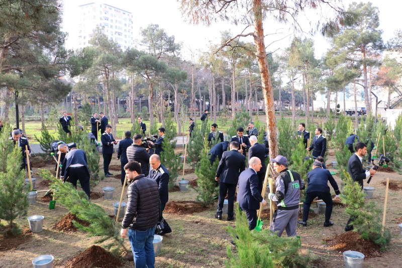 Bundan başqa, tədbir iştirakçıları yeni inzibati binanın yanında yerləşən parkda ağaclar əkiblər.