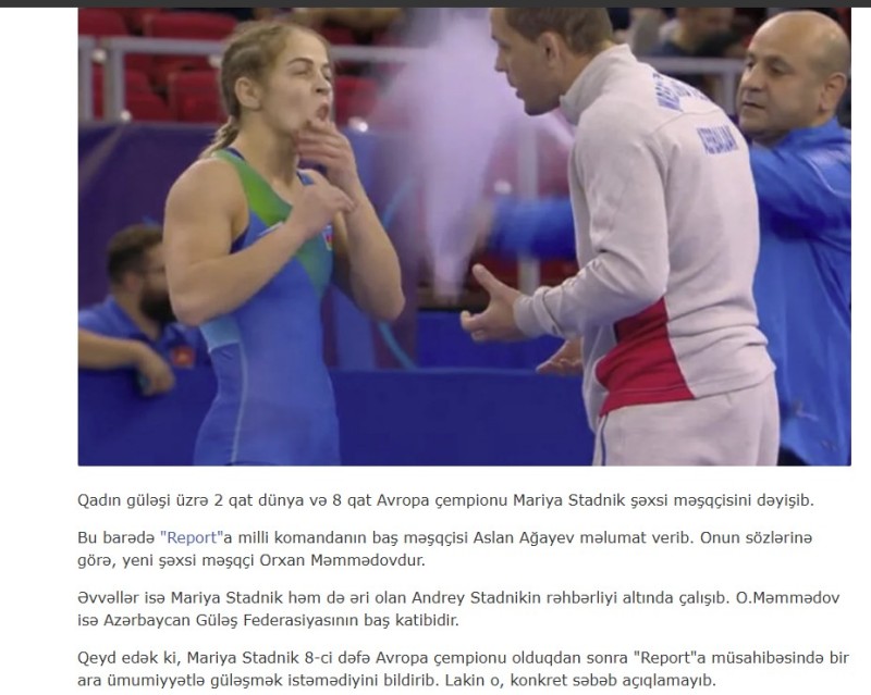Bununla bağlı milli komandanın baş məşqçisi Aslan Ağayev də 2021-ci ildə, Olimpiadadan öncə açıqlama vermişdi. O bildirmişdi ki, Mariya Stadnikin şəxsi məşqçisi Orxan Məmmədovdur. Lakin həmin vaxt o, baş katib vəzifəsini tuturdu.
