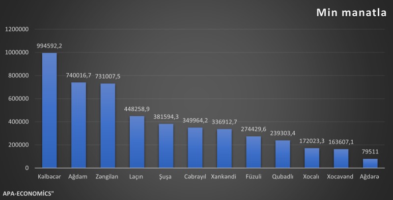 Qeyd edək ki, hesabat dövründə ən çox vəsait Kəlbəcər (994.6 mln. 11 min manat), Ağdam ( 740 mln. manat) və Zəngilan (731 mln. manat) rayonlarına ayrılıb.