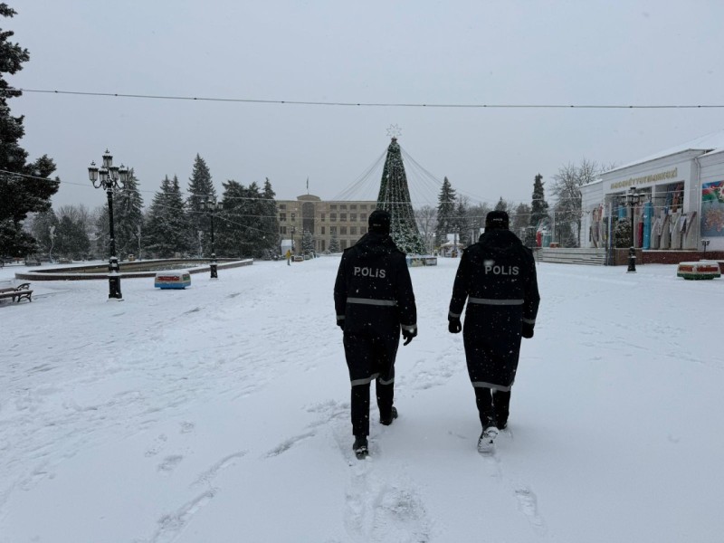 Ölkə ərazisində müşahidə olunan qarlı hava şəraiti ilə əlaqədar olaraq Yeni il bayramı günlərində vətəndaşların istirahət zonalarında və yollarda hərəkət intensivliyinin artması fonunda polis əməkdaşları ölkəboyu gücləndirilmiş rejimdə xidmətini davam etdirir.