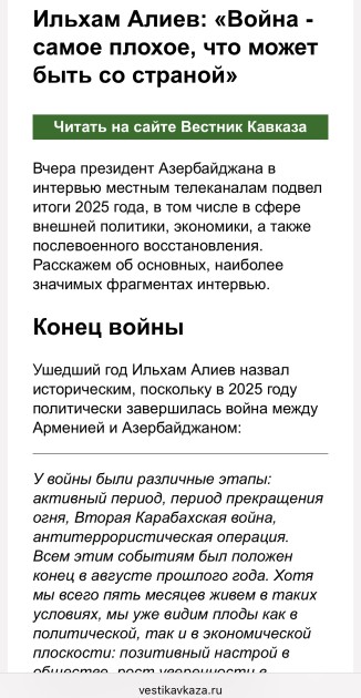 Ümumilikdə, Rusiya mediası Azərbaycanın regional və beynəlxalq proseslərdə strateji rolunu vurğulayır, Prezident İlham Əliyevin müsahibəsini geniş şəkildə işıqlandırır və onun bəyanatlarını rəsmi Bakının ardıcıl, müstəqil və fəal xarici siyasətinin təzahürü kimi qiymətləndirir.