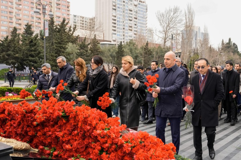 Nazirliyin İctimaiyyətlə əlaqələr şöbəsindən Bakıvaxtı.az-a verilən məlumata görə, abidənin önünə gül dəstələri düzülüb, Xocalı soyqırımı qurbanlarının əziz xatirəsi ehtiramla anılıb.