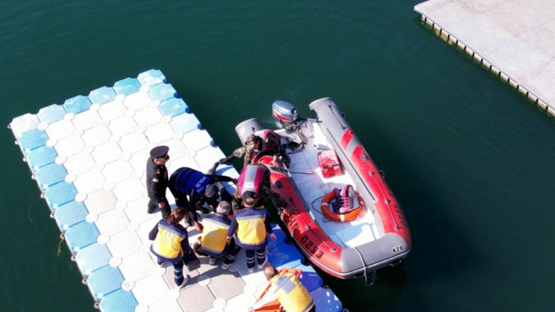 Təlim zamanı iki ədəd kiçikhəcimli gəminin şərti toqquşma hadisəsi və bu zaman həyata keçirilən zəruri və təxirəsalınmaz tədbirlər simulyasiya edilib. Belə ki, "qəza" zamanı "zərərçəkmişlər" xilasedicilər tərəfindən "xilas olunaraq ilk yardım" göstərildikdən sonra aidiyyəti üzrə təcili tibbi yardım briqadasına təhvil veriliblər. Gəmidə baş vermiş şərti yanğın yanğınsöndürənlər tərəfindən "söndürülüb, digər ərazilər yanğından mühafizə edilib".