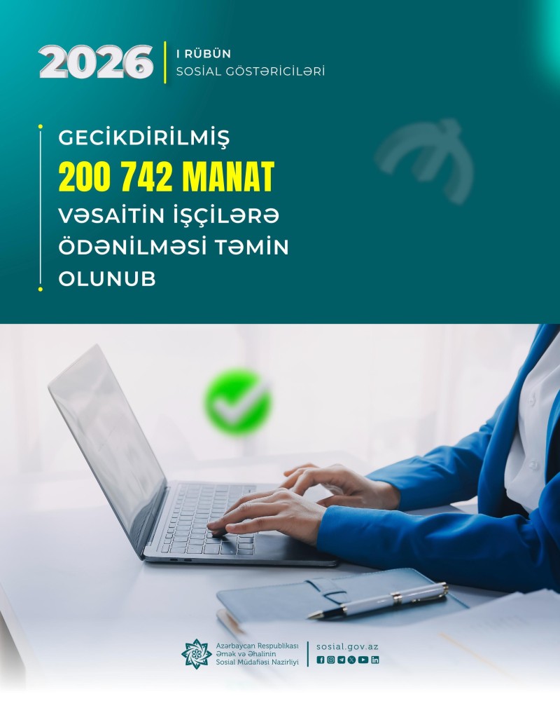 Əmək və Əhalinin Sosial Müdafiəsi Nazirliyi yanında Dövlət Əmək Müfəttişliyi Xidməti yanvar-mart ayları ərzində işəgötürənlər tərəfindən sosial xarakterli ödənişlər olan 200 742 manat vəsaitin işçilərə ödənilməsinin gecikdirildiyini müəyyən edib.
