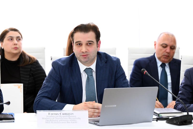Sonra Milli Komissiyanın baş katibi, Mədəniyyət Nazirliyi Beynəlxalq əməkdaşlıq şöbəsinin müdiri Fərrux Cumayev Katibliyin fəaliyyəti ilə bağlı hesabatı təqdim edib.