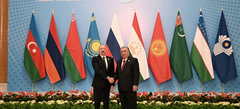 Azərbaycan Respublikasının Prezidenti İlham Əliyev MDB Dövlət Başçıları Şurasının iclasında iştirak etmək üçün Düşənbədəki "Millət" sarayına gəlib.