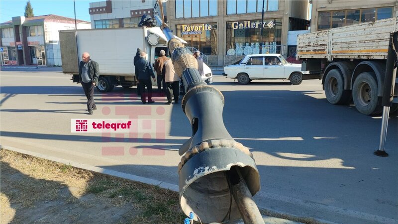 Gəncədə işıq dirəyi minik və yük avtomobilinin üzərinə aşıb.