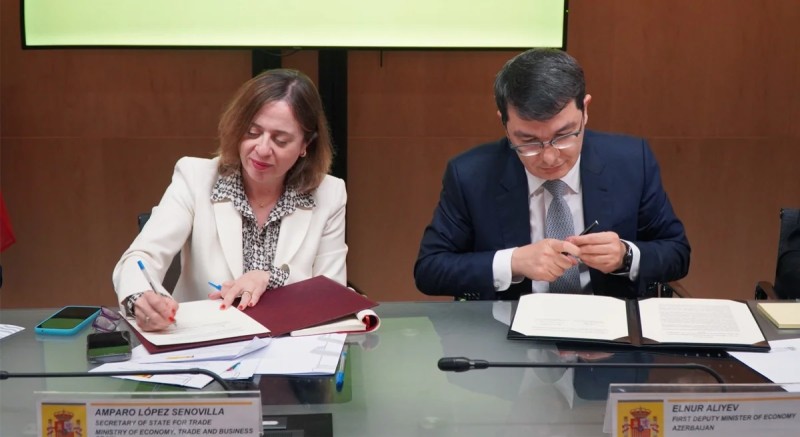 Azərbaycan nümayəndə heyətinin səfəri çərçivəsində İkinci İspaniya-Azərbaycan Strateji İqtisadi Dialoqu keçirilib. Tədbirdə vurğulanıb ki, İqtisadi Dialoq mexanizmi vasitəsilə ticarət dövriyyəsinin artırılması, investisiya axınının genişləndirilməsi və prioritet sahələr üzrə əməkdaşlığın gücləndirilməsi üçün əlverişli imkanlar var. Bununla yanaşı, tərəfdaşlığın gələcəkdə daha geniş institusional formatda inkişaf etdirilməsinin əhəmiyyəti diqqətə çatdırılıb. Tədbirdə Azərbaycan və İspaniya arasında Strateji İqtisadi Dialoqun 2-ci iclasının Protokolu imzalanıb, həmçinin Protokolun əlavəsi olaraq ticarət, investisiya, nəqliyyat-tranzit və digər istiqamətlər üzrə tərəfdaşlığı nəzərdə tutan Yol Xəritəsi qəbul edilib.