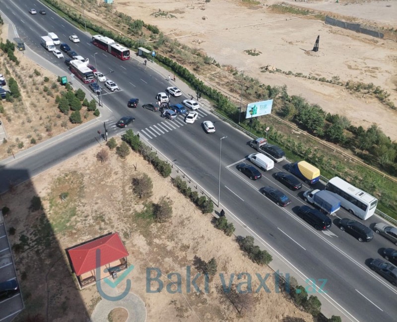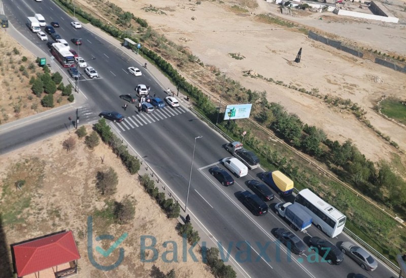 Hadisə səbəbindən yolda sıxlıq yaranıb.