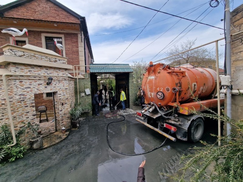 Keşlədə kollektorun daşdığı ərazidə dezinfeksiya işləri aparılır - FOTO