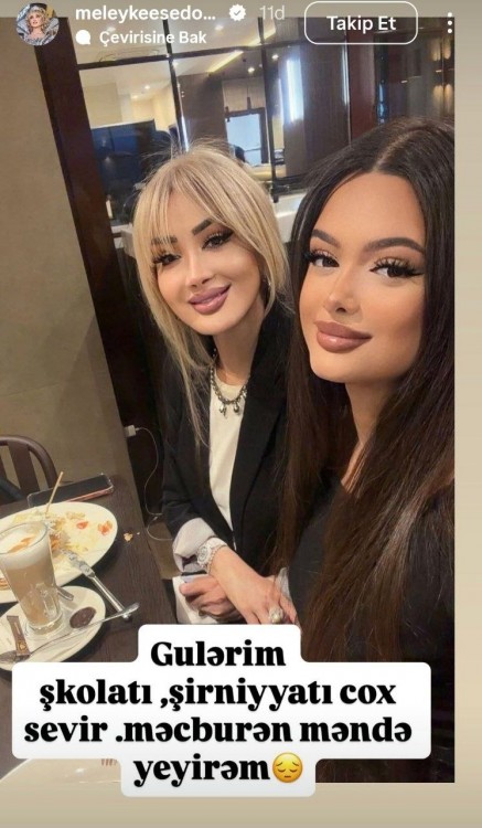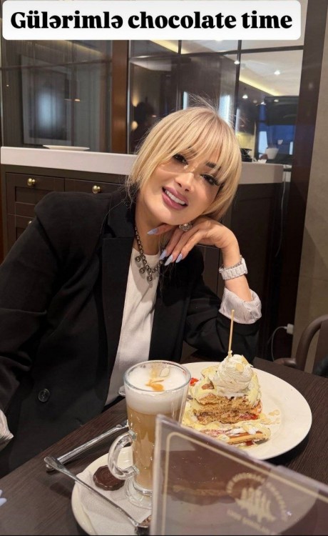 O, övladı ilə yayımladığı fotolara "Gülərim şokoladı, şirniyyatı çox sevir. Məcbur mən də yeyirəm" deyə yazıb./Axşam.az
