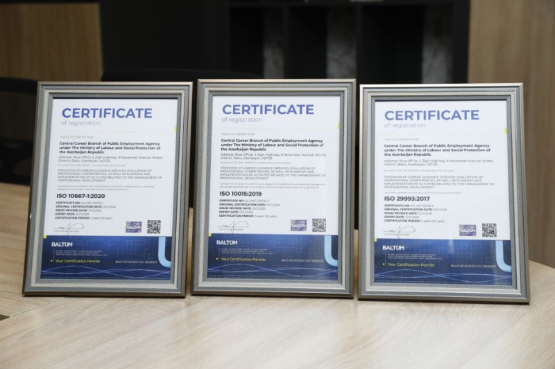 Sertifikatların təqdim edilməsi tədbirində agentliyin İdarə Heyəti sədrinin müavini Nihad Muxtarlı vurğulayıb ki, Mərkəzi Karyera filialının beynəlxalq ISO standartları üzrə sertifikatlaşdırılması agentlikdə idarəetmə mexanizmlərinin müasir tələblər əsasında qurulmasına, karyera və qiymətləndirmə xidmətlərinin keyfiyyətinin yüksəldilməsinə xidmət edir.