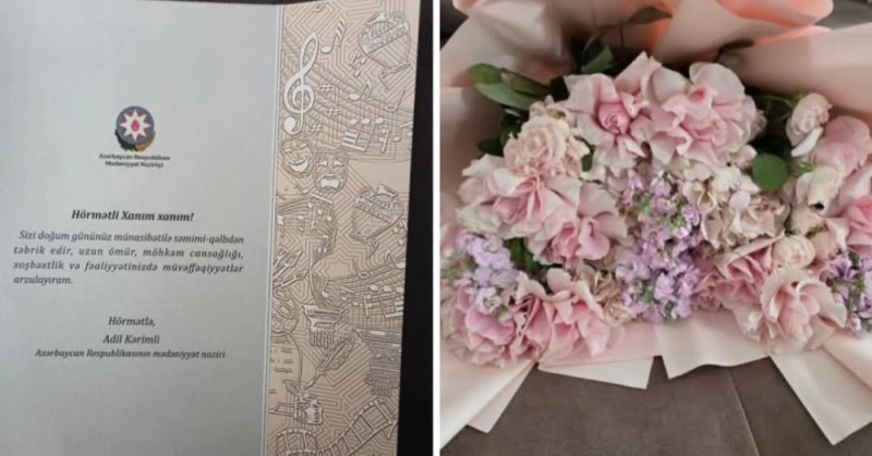 Təbrik məktubu və gül dəstəsinin fotosunu yayımlayan bəstəkar "Bu gözəl çiçəklərə və təbrikə görə mədəniyyət naziri Adil Kərimliyə təşəkkür edirəm. Diqqət dəyərdi" sözlərini yazıb.