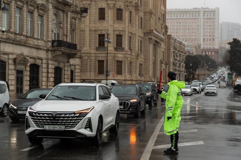 Bildirilib ki, mövcud hava şəraiti ilə bağlı vətəndaşların təhlükəsizliyinin təmini məqsədilə polis naryadları küçə və prospektlər boyu xidmətə cəlb ediliblər.