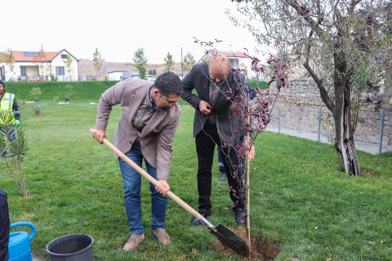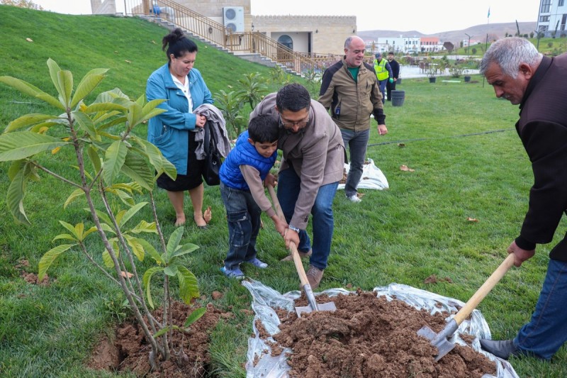 Daha sonra aksiya iştirakçıları müxtəlif növlü ağacları kənd parkının ərazisində əkiblər.
