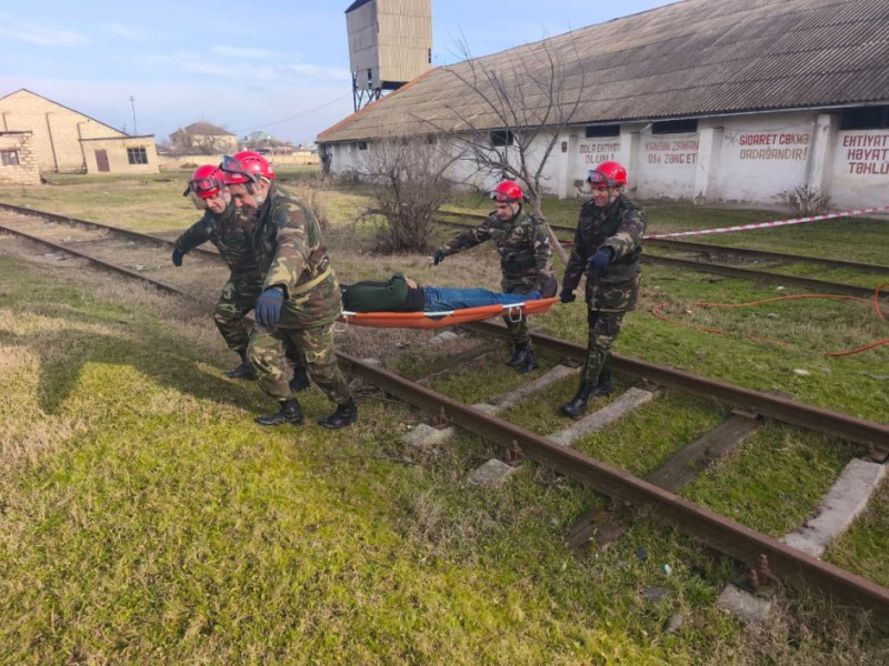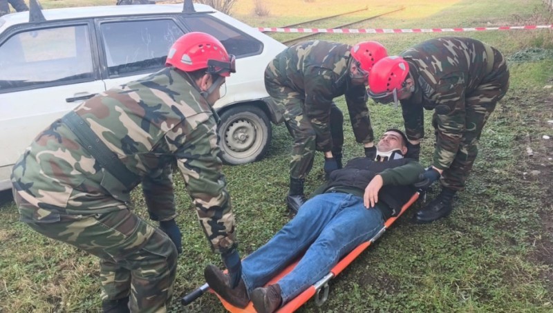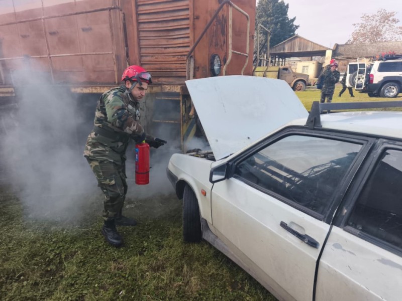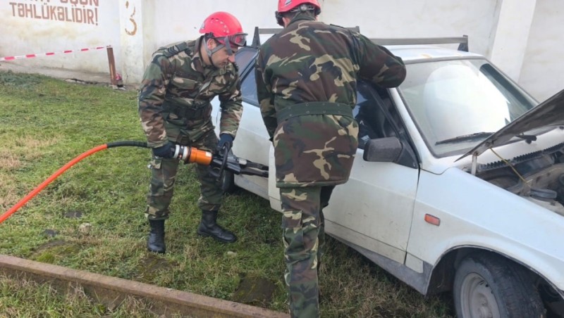 Təlim zamanı şərti olaraq baş vermiş nəqliyyat qəzası ilə əlaqədar “hadisə yerinə” operativ çatan xilasedicilər xüsusi xilasetmə vasitələrindən istifadə etməklə deformasiyaya uğramış nəqliyyat vasitəsindən “zərərçəkmişləri xilas edərək” onlara “təxirəsalınmaz ilkin yardım göstəriblər”.