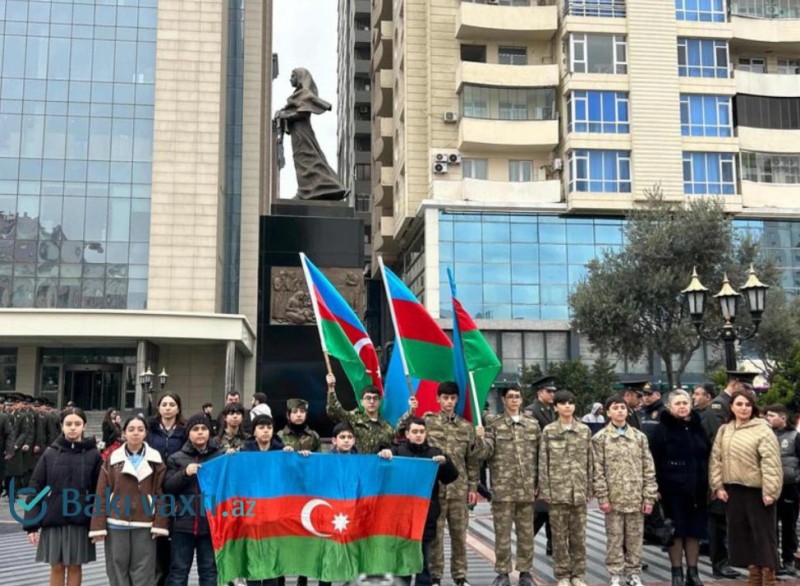 Şagirdlərin “Ana harayı” abidəsinə hərbi nizamla gəlişi diqqət çəkdi.