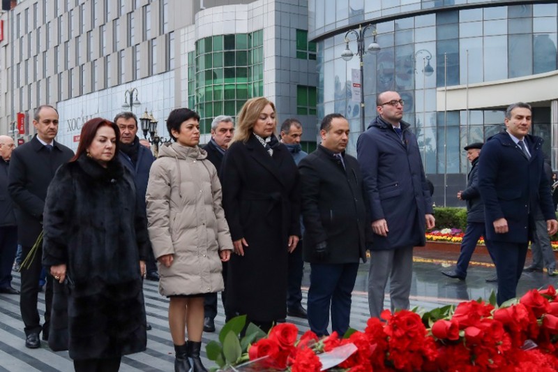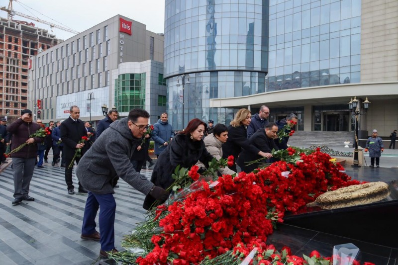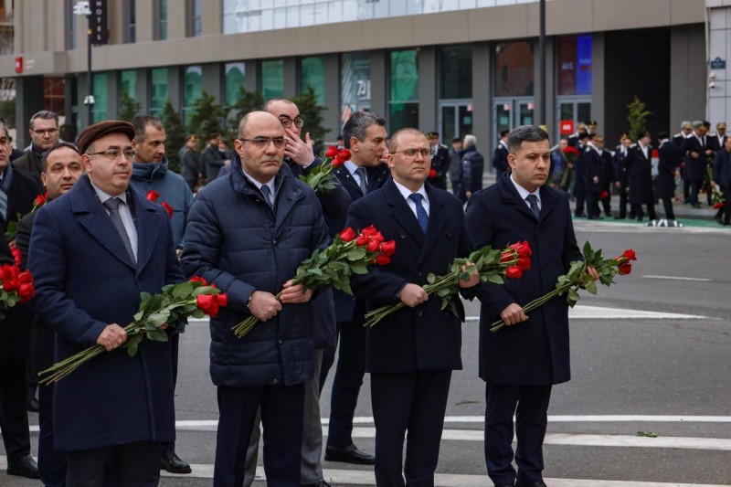 Nazirliyin əməkdaşları abidə önünə tər gül dəstələri qoyublar, faciə qurbanlarının xatirəsi ehtiramla yad ediblər.