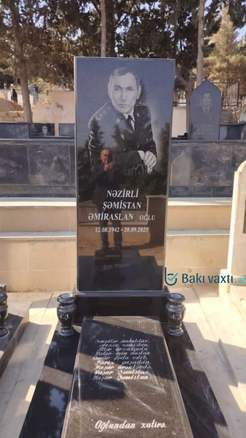Bakıvaxtı.az bildirir ki, məzar daşı mərhumun ailəsi və yaxın dostlarının təşəbbüsü ilə hazırlanıb. Üzərində Şəmistan Nəzirlinin portreti və həyat illəri həkk olunub.