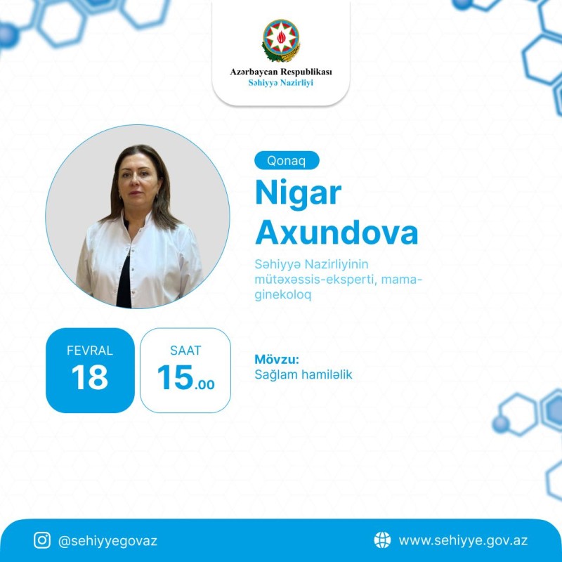 Bu gün Səhiyyə Nazirliyinin rəsmi “İnstagram” səhifəsində növbəti canlı yayım sağlam hamiləlik haqqında olacaq.