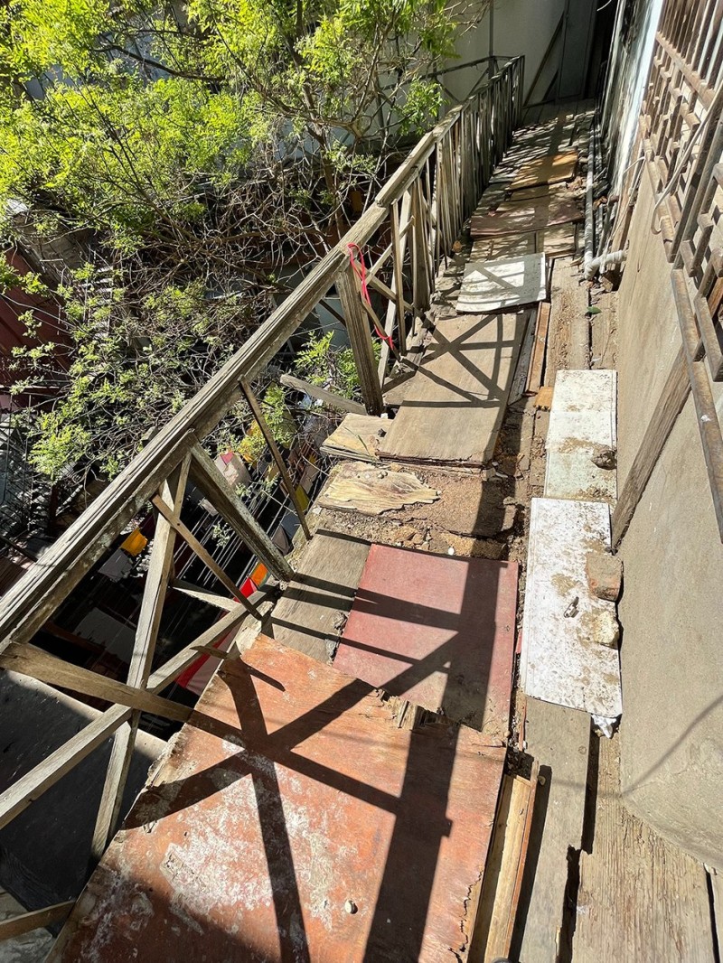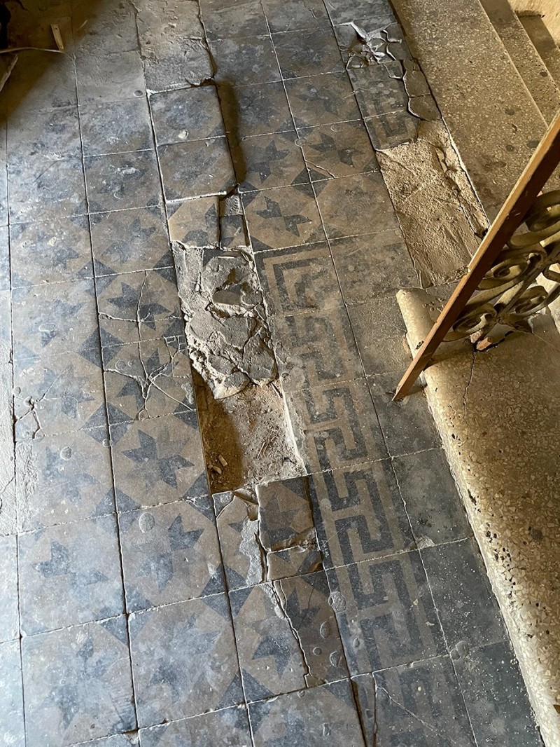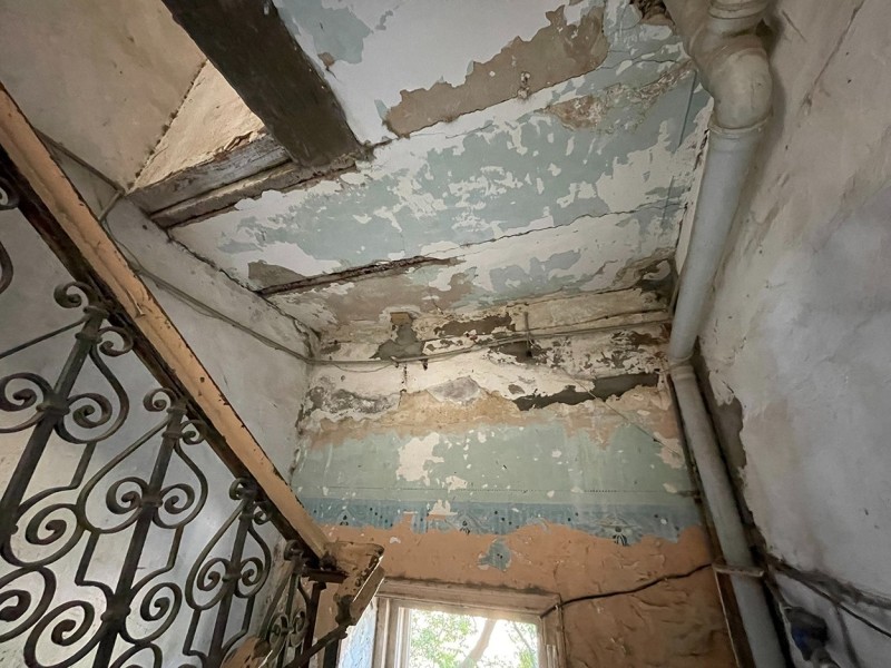 Binanın giriş və ümumi sahələrinın suvaqları dağılıb, pilləkən məhəccərləri əyrilib, pilləkənlər çox köhnəlib və dağıdılıb, eyvanların döşəmələri çürüyüb, çox yerdə kanalizasiya suları sızır.