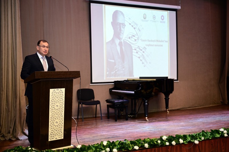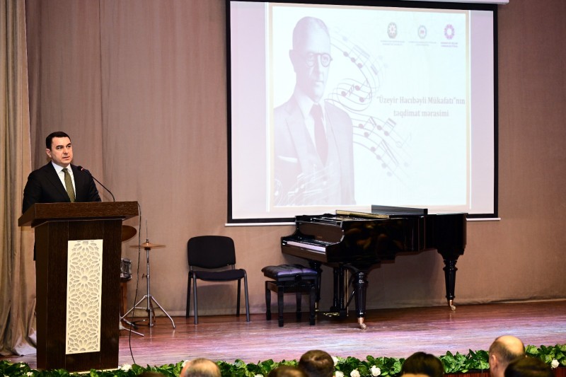 Mədəniyyət naziri Adil Kərimli çıxış edərək “Üzeyir Hacıbəyli Mükafatı” haqqında məlumat verib. Bildirilib ki, Prezident İlham Əliyevin müvafiq Sərəncamı ilə ötən il dahi bəstəkar, Azərbaycan peşəkar musiqisinin banisi, musiqişünas və ictimai xadim Üzeyir Hacıbəylinin anadan olmasının 140 illiyi ölkəmizdə və xaricdə müxtəlif səpkili tədbirlərlə qeyd edilib. Mədəniyyət Nazirliyi və tabe qurumlar tərəfindən yubiley ili ərzində çoxsaylı layihə və tədbirlər həyata keçirilib.