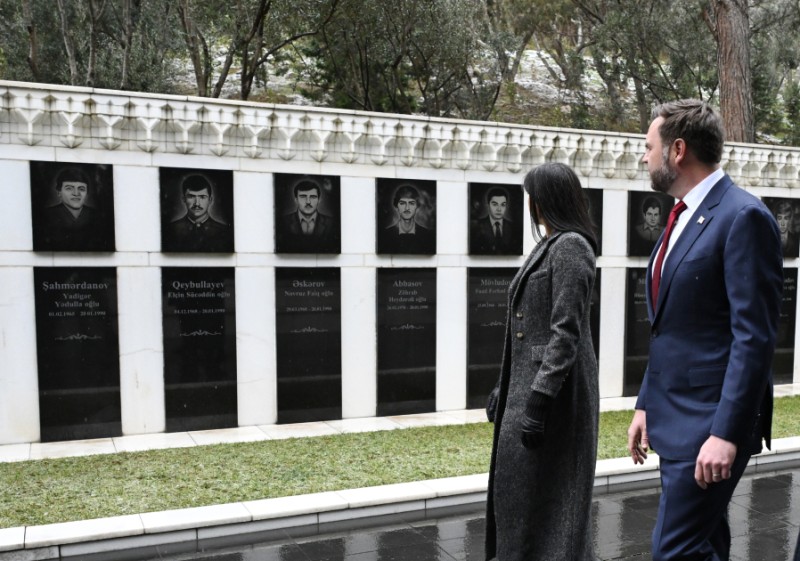 Vens cütlüyü Şəhidlər xiyabanında "Əbədi məşəl" abidəsi önünə əklil qoyub.