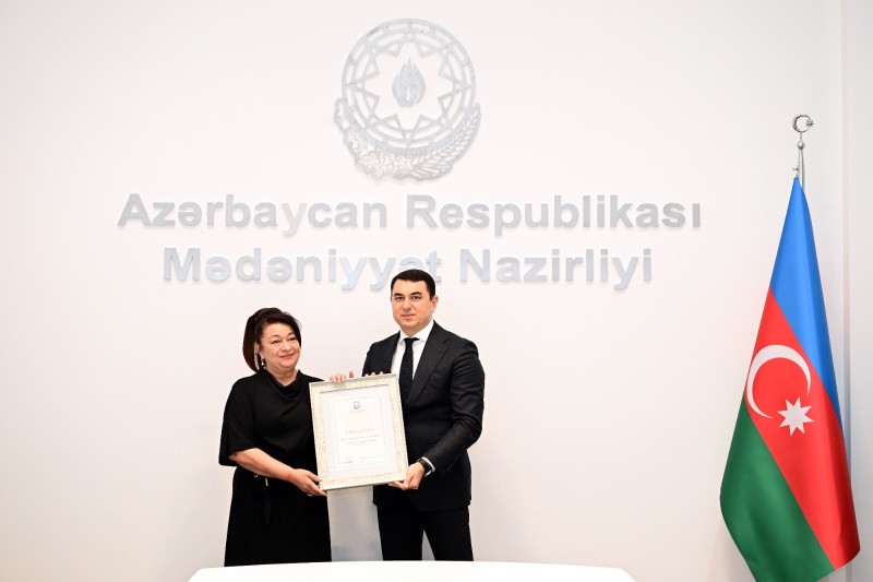 Sonra Adil Kərimli yubilyarlara Mədəniyyət Nazirliyinin Fəxri diplomlarını təqdim edib, cansağlığı və fəaliyyətlərində uğurlar arzulayıb.
