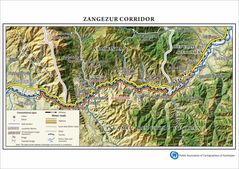 "Azərbaycan Kartoqrafları" İctimai Birliyi Zəngəzur dəhlizinin xəritəsini hazırlayıb. Xəritənin altlığı yüksək keyfiyyətli kosmik şəkillər əsasında tərtib edilib.