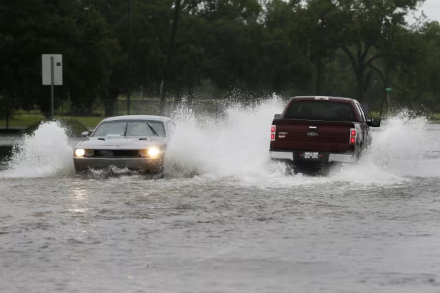 “Bakubus”a məxsus olan iritutumlu BMC markalı avtomobil Şəhər şosesinin su basmış hissəsində qalıb.