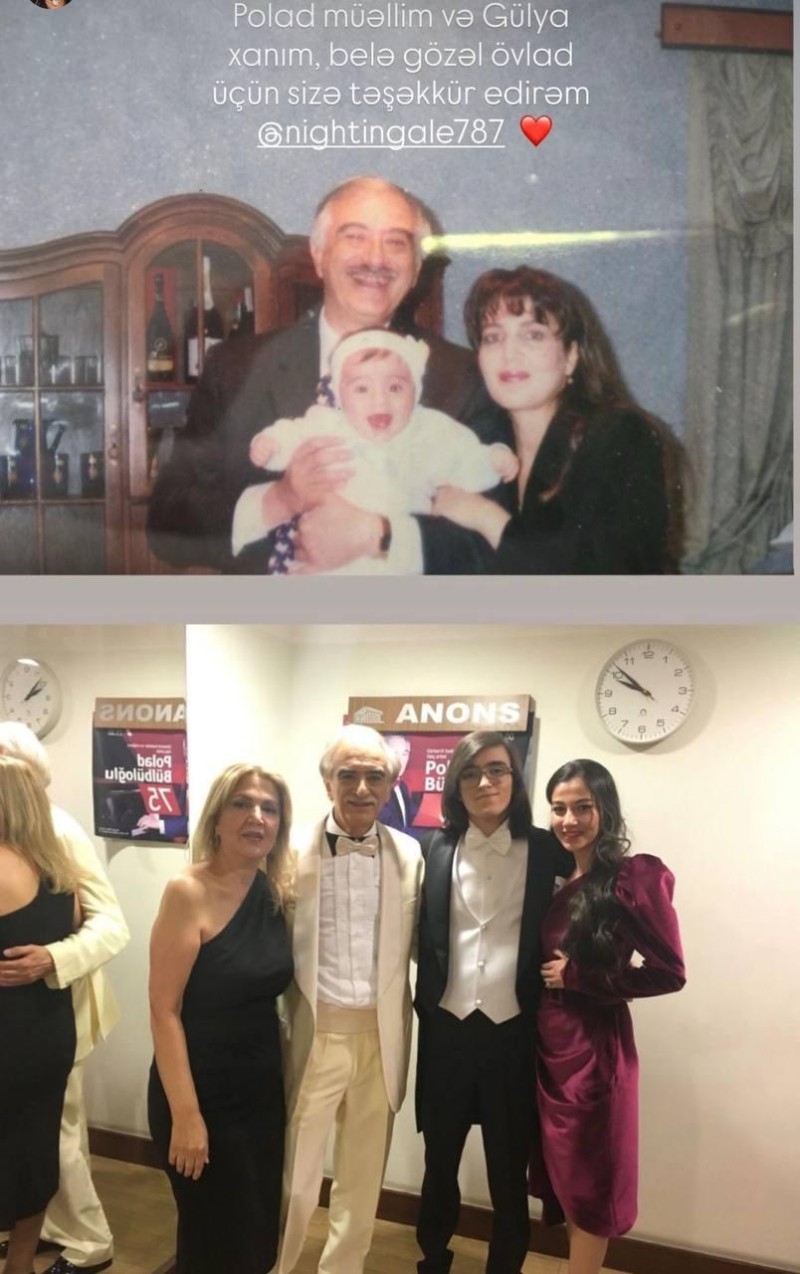 Aysel şəkillərə "Ad günün mübarək. Hər zaman parla. Polad müəllim və Gulya xanım, belə gözəl övlad üçün sizə təşəkkür edirəm" sözlərini yazıb.