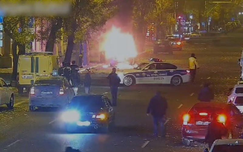 Sahil bağının yaxınlığında avtomobil yandı - VİDEO